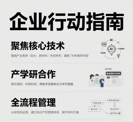●產(chǎn)學(xué)研合作:聯(lián)合高校、科研機(jī)構(gòu),將技術(shù)優(yōu)勢(shì)轉(zhuǎn)化為專利壁壘。