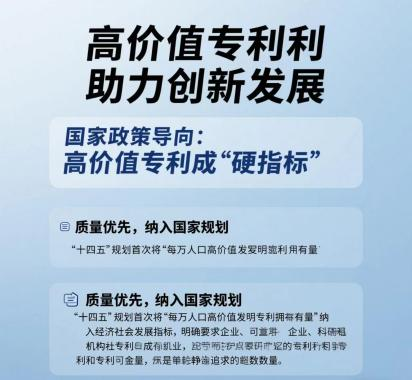 “十四五”規(guī)劃首次將“每萬人口高價(jià)值發(fā)明專利擁有量”納入經(jīng)濟(jì)社會(huì)發(fā)展指標(biāo),明確要求企業(yè)、科研機(jī)構(gòu)提升專利含金量,而非單純追求數(shù)量