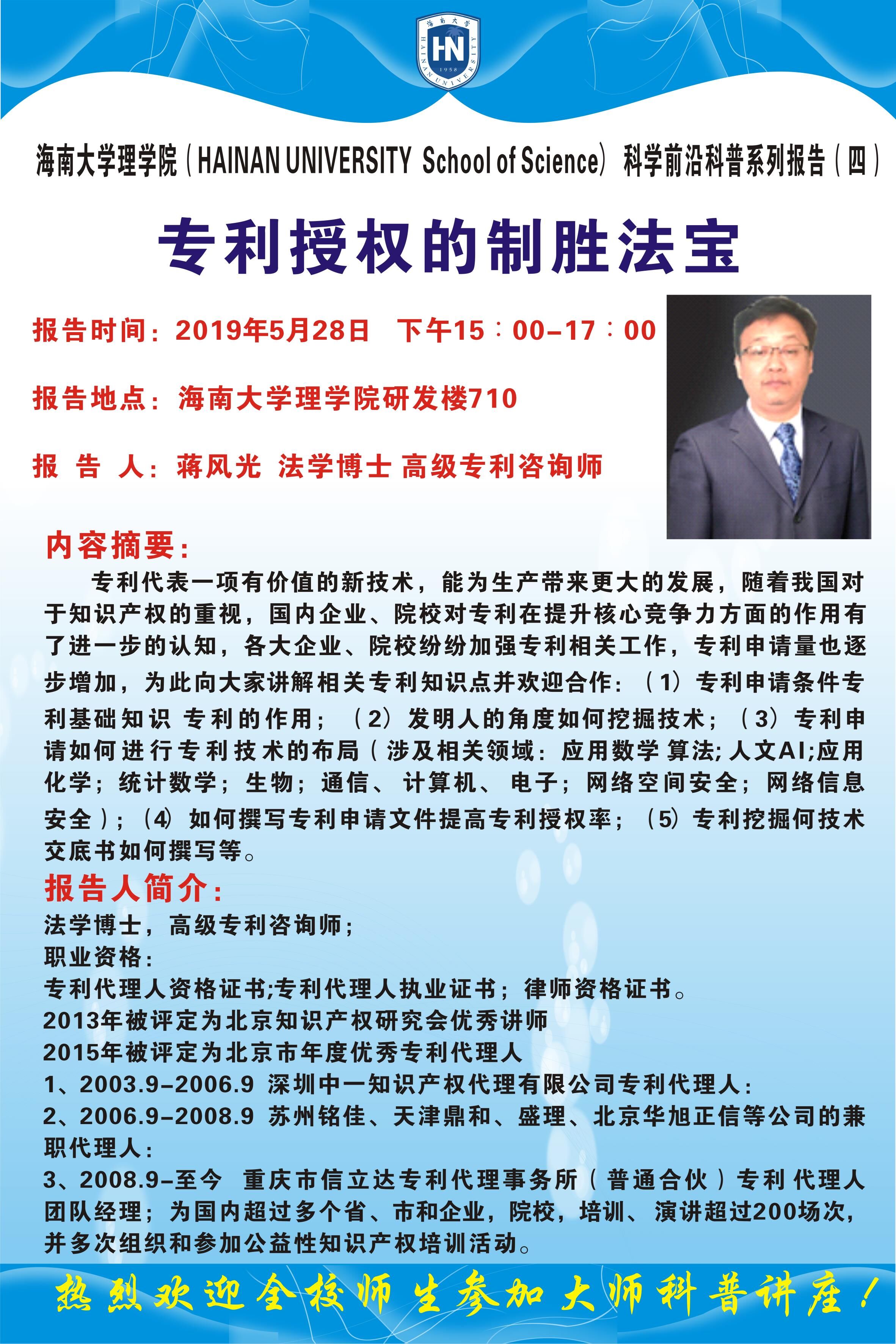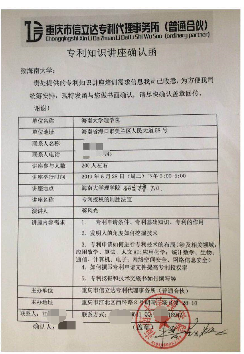 2019年528日重慶立信達在《海南大學》順利召開專利講座