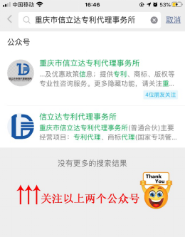 一:微信公眾號搜索<重慶立信達知識產(chǎn)權代理有限公司> 點擊關注公眾號